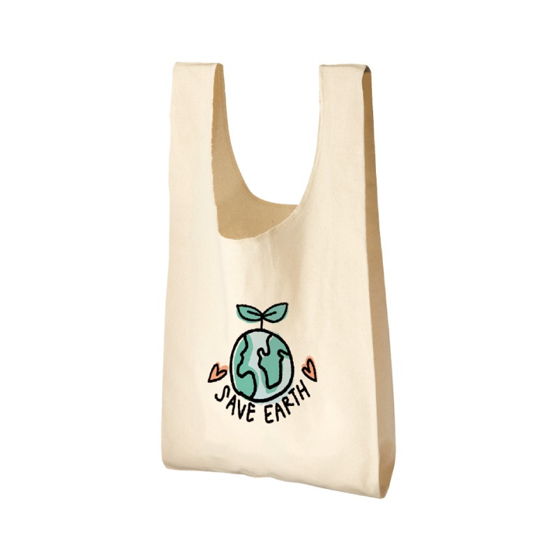 厚手コットンマルシェバッグ(M) ナチュラル(名入れフルカラー)